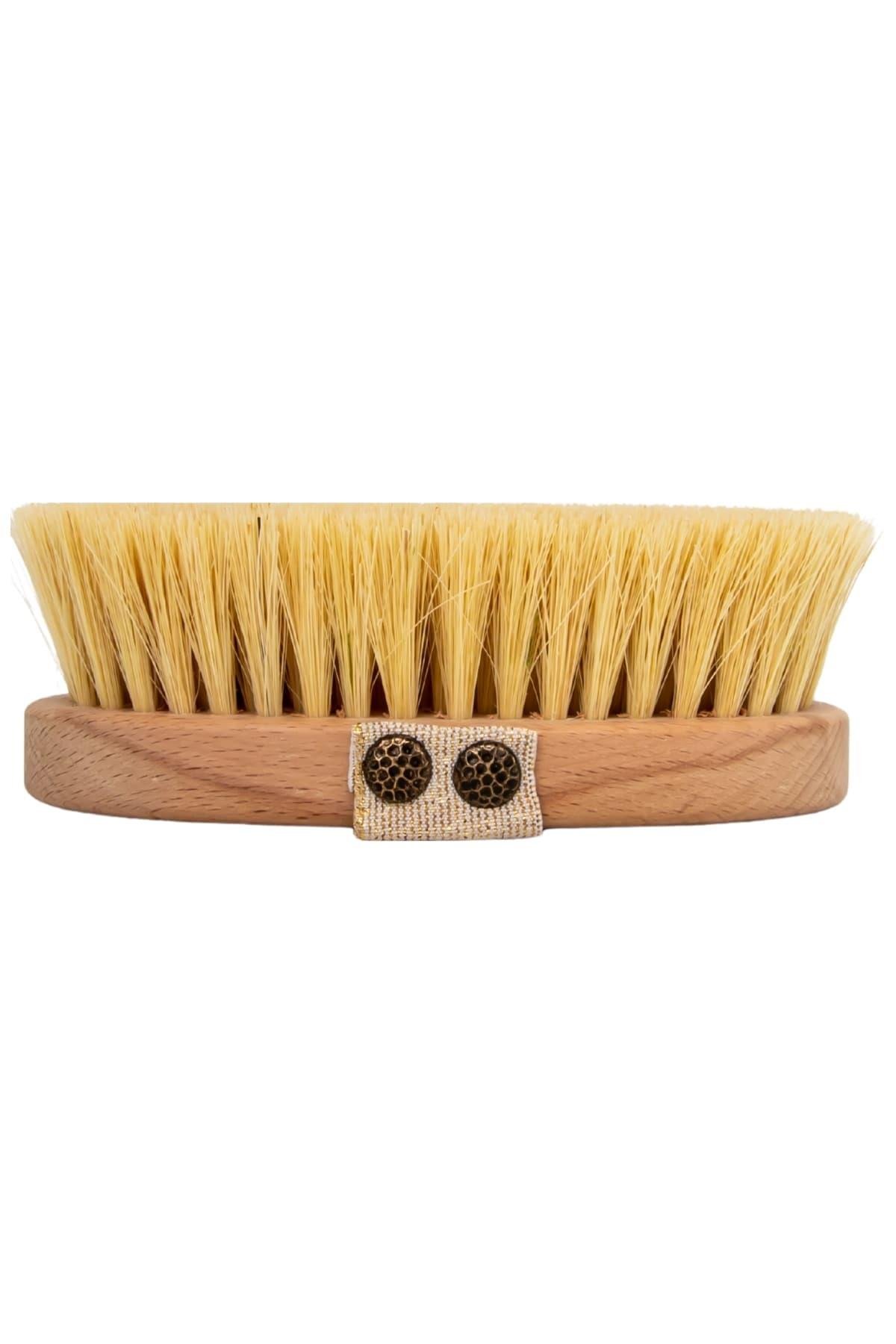%100 doğal agave sisalana (sisal) bitkisinin liflerinden üretilmiştir ve hayvansal ürün kullanmamayı tercih edenler için sentetik olmayan doğal bir seçenek sunar. Kuru ve ıslak fırçalama için uygundur. Sisal lifleri orta sert bir yapıya sahiptir. Bu nedenle çok fazla bastırmaya gerek olmadan kullanılabilir. Hassas cilde sahip kişiler ince bir beze sararak ya da duş sırasında ıslatarak kullanmayı tercih edebilir. Tutma kısmı ham ahşaptan yapıldığı için ıslak fırçalama sonrası kurulanması ve nemsiz bir ortamda kılların yönü aşağı bakacak şekilde tam olarak kurumaya bırakılması tavsiye edilir. · Fırçalanmış bir cilt, topikal krem uygulamalarına da daha iyi cevap verecek, kullandığınız kremlerden daha fazla etki almanıza yardımcı olacaktır. · Varis, egzama, sedef gibi cilt problemleri yaşayanların kullanması önerilmez. Kullanım Önerileri: Vücudu ayak bileklerinden başlayarak yukarı doğru, geniş dairesel hareketlerle fırçalayabilirsiniz. Bir bölge üzerinde çok fazla tekrarla fırçalama yapmadan, göğüs ve boyun bölgesi hariç tüm vücudunuzu 3-4 dakika boyunca fırçalayınız. Duş öncesinde yapılması tavsiye edilir. Hassas cilde sahip olanlar cildi tahriş etmemek için kuru bir bez üzerinden ya da duş sırasında fırçayı ıslatıp yumuşatarak kullanmayı tercih edebilirler. Islak kullanım sonrası temiz bir bezle kurulanıp nemsiz bir ortamda mümkünse asarak kurumaya bırakılması tavsiye edilir.
